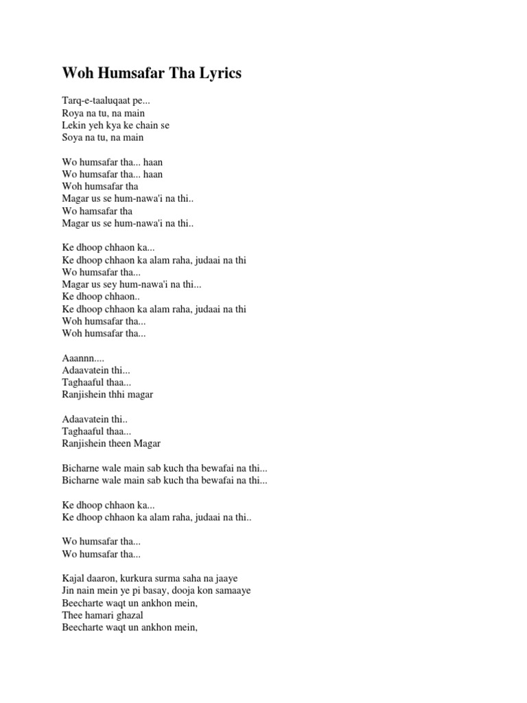 Wo Humsafar Tha : Ost wo humsafar tha song from the album humsafar is released on sep 2011.